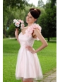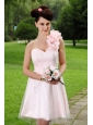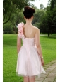 Light Pink A-line One Shoulder Prom / Homecoming Dress Tulle Hand Made Flowers Mini-length