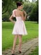 Pretty as a pricess in this baby pink short prom dress! This simple dress gives you a chance to revive your naivety. The modified sweetheart and single shoulder adorned with flowers in full blosom on the fitted bodice adds a sweet touch. The mini-length skirt is overlayed with a sheer tulle to creat a infinite imaginary dream. A hidden zipper makes for easy off and on and secures the dress in place. You'll be the belle of the ball in this beautiful short dress!