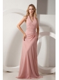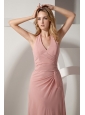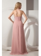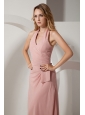 Light Pink Column Halter Ruch Bridesmaid Dress Brush Train Chiffon