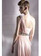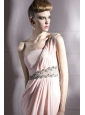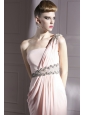 Light Pink Column One Shoulder Floor-length Taffeta and Chiffon Beading Prom Dress
