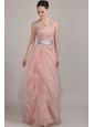 Home >  Prom Dresses >  Cheap Prom Dresses > Light Pink Column / Sheath One Shoulder Floor-length Organza Ruffles Prom Dress