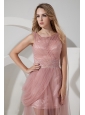 Light Pink Column Straps Celebrity Dress Tulle Beading Brush Train