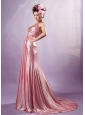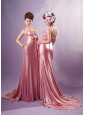 Light Pink Cross Straps Silk Like Satin Beading Prom / Evening Dress With Court Train