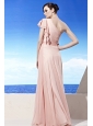 Light Pink Empire One Shoulder Floor-length Chiffon Ruch Prom Dress