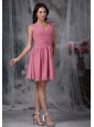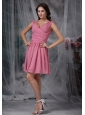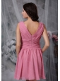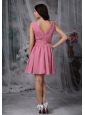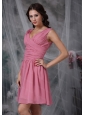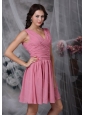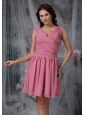 Light Pink Empire V-neck Chiffon Ruch Dama Dresses On Sale
