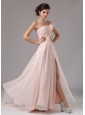 Light Pink One Shoulder and Hand Made Flowers For 2013 Evening Dress Custom Made