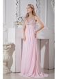 Home >  Prom Dresses >  Best Prom Dresses > Light Pink Straps Chiffon Prom Dress with Gold and Silver Beading
