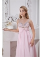 Light Pink Straps Chiffon Prom Dress with Gold and Silver Beading