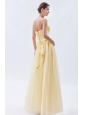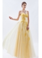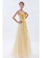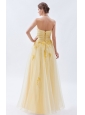 Light Yellow A-line / Princess Sweetheart Prom Dress Embroidery Tulle Floor-length