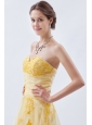 Home >  Prom Dresses >  Beautiful Prom Dresses > Light Yellow A-line / Princess Sweetheart Prom Dress Embroidery Tulle Floor-length