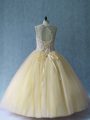 Light Yellow Ball Gowns Scoop Sleeveless Tulle Floor Length Lace Up Beading Ball Gown Prom Dress