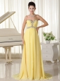 Light Yellow Beaded Decorate Bust and Waist Sweetheart Cheap Homecoming Dress