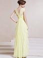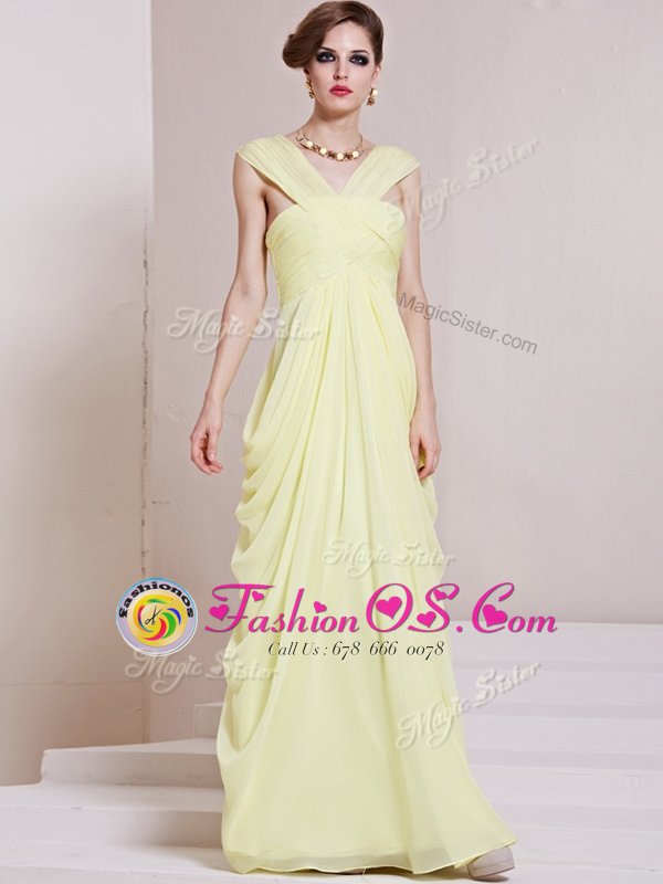 Light Yellow Chiffon Criss Cross Prom Party Dress Sleeveless Floor Length Ruching