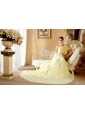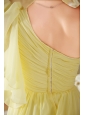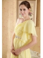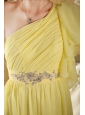 Home >  Prom Dresses >  Cheap Prom Dresses > Light Yellow Column / Sheath One Shoulder Court Train Chiffon Beading and Ruch Prom / Evening Dress