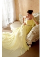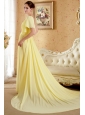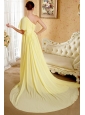 Light Yellow Column / Sheath One Shoulder Court Train Chiffon Beading and Ruch Prom / Evening Dress