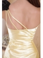 Home >  Prom Dresses >  Unique Prom Dresses > Light Yellow Column / Sheath One Shoulder Floor-length Elastic Woven Satin Ruch Prom Dress