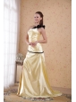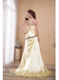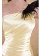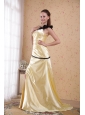 Light Yellow Column / Sheath One Shoulder Floor-length Elastic Woven Satin Ruch Prom Dress