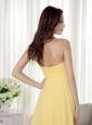 Light Yellow Column / Sheath Sweetheart High-low Chiffon Beading Prom / Evening Dress