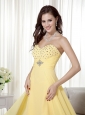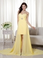 Light Yellow Column / Sheath Sweetheart High-low Chiffon Beading Prom / Evening  Dress