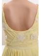 Light Yellow Empire Bateau Appliques with Beading Short Sleeves Prom Dress