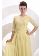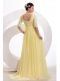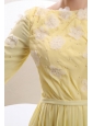 Home >  Prom Dresses >  Beautiful Prom Dresses > Light Yellow Empire Bateau Appliques with Beading Short Sleeves Prom Dress