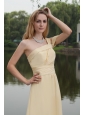 Light Yellow Empire One Shoulder Brush / Sweep Chiffon Ruch Prom Dress