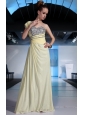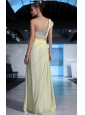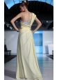 Light Yellow Empire One Shoulder Floor-length Chiffon and Sequin Beading and Ruch Prom / Celebrity Dress
