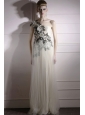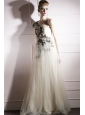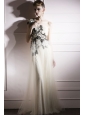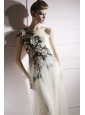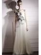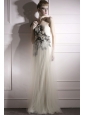 Seize the day at your 2013 prom or formal with a sensational long dress. Snow white colors accented with asymmetrical strap, which is covered by several dedicate appliques. The ruched bodice and pleated skirt covered by the transparent fabric adding a sense of elegance. On the whole, this is really a wonderful choice for every prom at any formal and informal occassion.