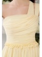 Light Yellow Empire One Shoulder Short Chiffon Pleat Bridesmaid Dress