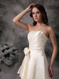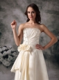 Light Yellow Empire Strapless Wedding Dress Taffeta Beading Floor-length