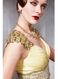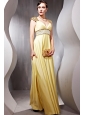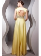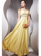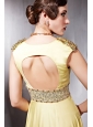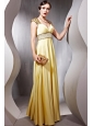 Home >  Evening Dresses > Light Yellow Empire V-neck Floor-length Elastic Woven Satin Beading Prom Dress