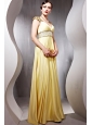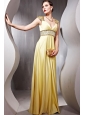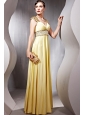 Light Yellow Empire V-neck Floor-length Elastic Woven Satin Beading Prom Dress