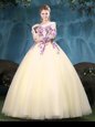Light Yellow Lace Up Scoop Appliques Quinceanera Gown Tulle Long Sleeves