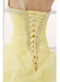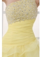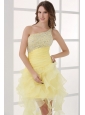 Light Yellow One Shoulder Asymmetrical Organza Prom Dress with Beading