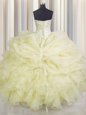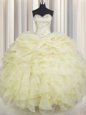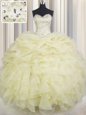 Light Yellow Sleeveless Floor Length Beading and Ruffles Lace Up Quinceanera Gown