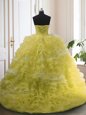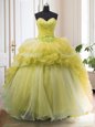 Light Yellow Sweetheart Neckline Beading and Ruffled Layers 15th Birthday Dress Sleeveless Lace Up