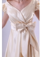 Light Yellow V-neck Cap Sleeves Bow Ruching Prom Dress