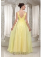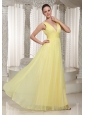 Light Yellow V-neck Chiffon Long Homecoming Dress 2013 Party Style