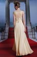 Home >  Evening Dresses > Light Yellow V-neck Neckline Beading and Ruching Evening Party Dresses Sleeveless Side Zipper