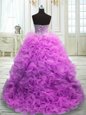 Lilac Ball Gowns Organza Sweetheart Sleeveless Beading and Ruffles Lace Up Quinceanera Dresses Sweep Train