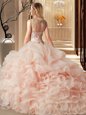 Lilac Ball Gowns Scoop Sleeveless Organza Brush Train Lace Up Beading and Ruffles and Pick Ups Quinceanera Gowns