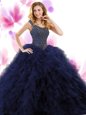 Lilac Ball Gowns Scoop Sleeveless Tulle Brush Train Lace Up Beading and Ruffles Vestidos de Quinceanera