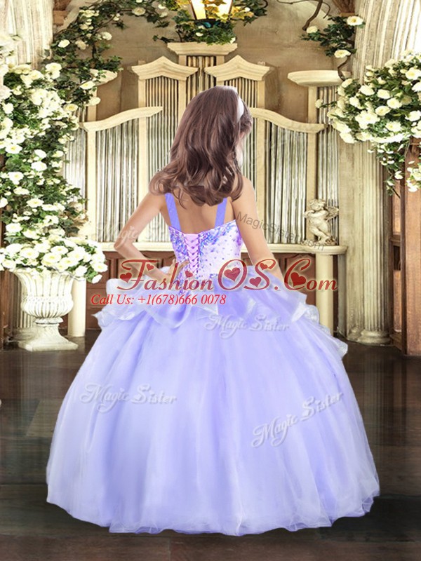 Lilac Ball Gowns Straps Sleeveless Beading Floor Length Lace Up Little Girls Pageant Dress Wholesale