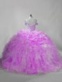 Home >  Quinceanera Dresses >  Popular Quinceanera Dresses > Lilac Ball Gowns Straps Sleeveless Organza Brush Train Lace Up Beading and Ruffles and Pick Ups Quince Ball Gowns
