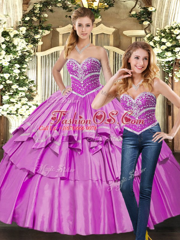 Lilac Ball Gowns Taffeta Sweetheart Sleeveless Beading Floor Length Lace Up Vestidos de Quinceanera