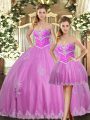 Lilac Ball Gowns Tulle Sweetheart Sleeveless Beading and Appliques Floor Length Lace Up Quinceanera Dresses