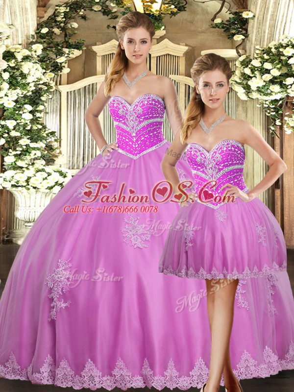Home >  Quinceanera Dresses >  Detachable Quinceanera Skirts > Lilac Ball Gowns Tulle Sweetheart Sleeveless Beading and Appliques Floor Length Lace Up Quinceanera Dresses