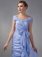 Lilac Column Mother Of The Bride Dress Off The Shoulder Ruch Mini-length Chiffon