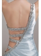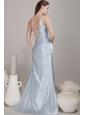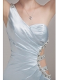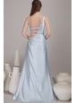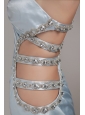 Do you want to be impressive at your party? This dress will make your dream come true. The gorgeous light blue prom dress features a one-shoulder bodice whice is ruched. One side of the waist is adorned with some straps encrusted with beadins. Your slim waist and sexy back will be seen between the straps. The taffeta material is soft and comfortable to wear.