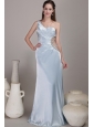 Lilac Column / Sheath One Shoulder Floor-length Taffeta Beading Prom Dress